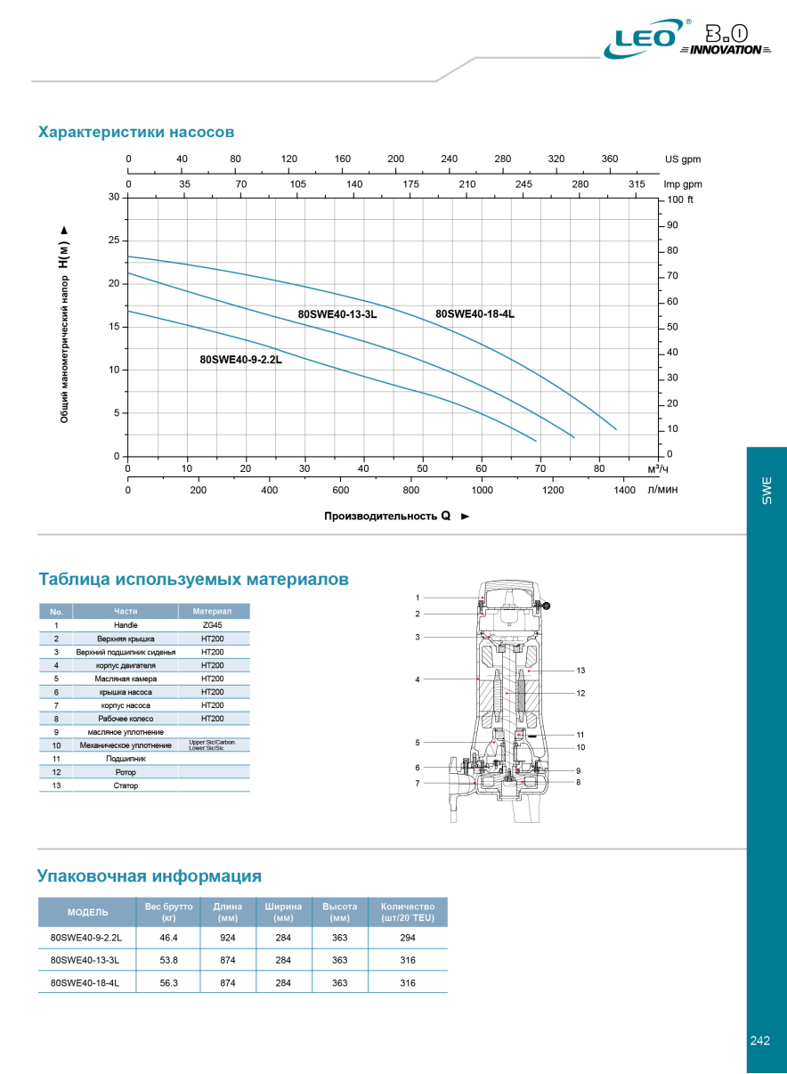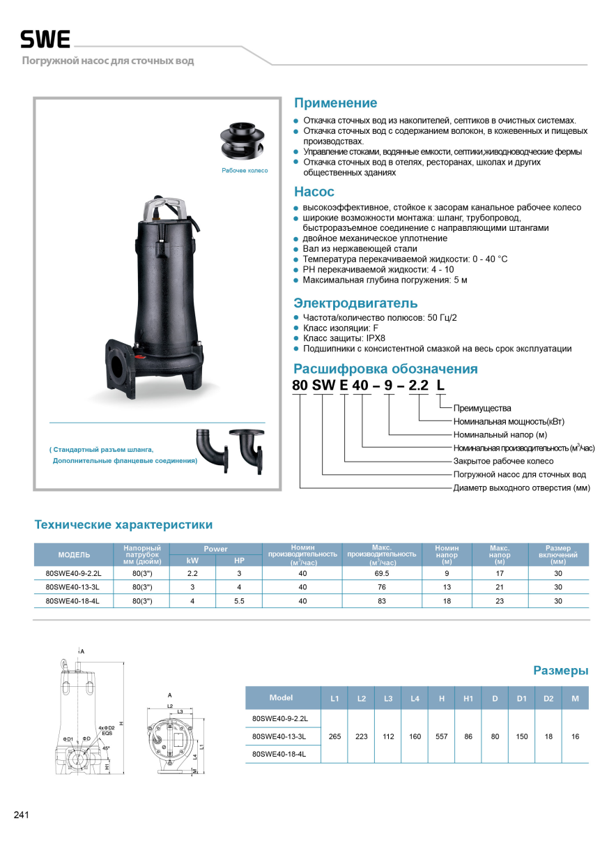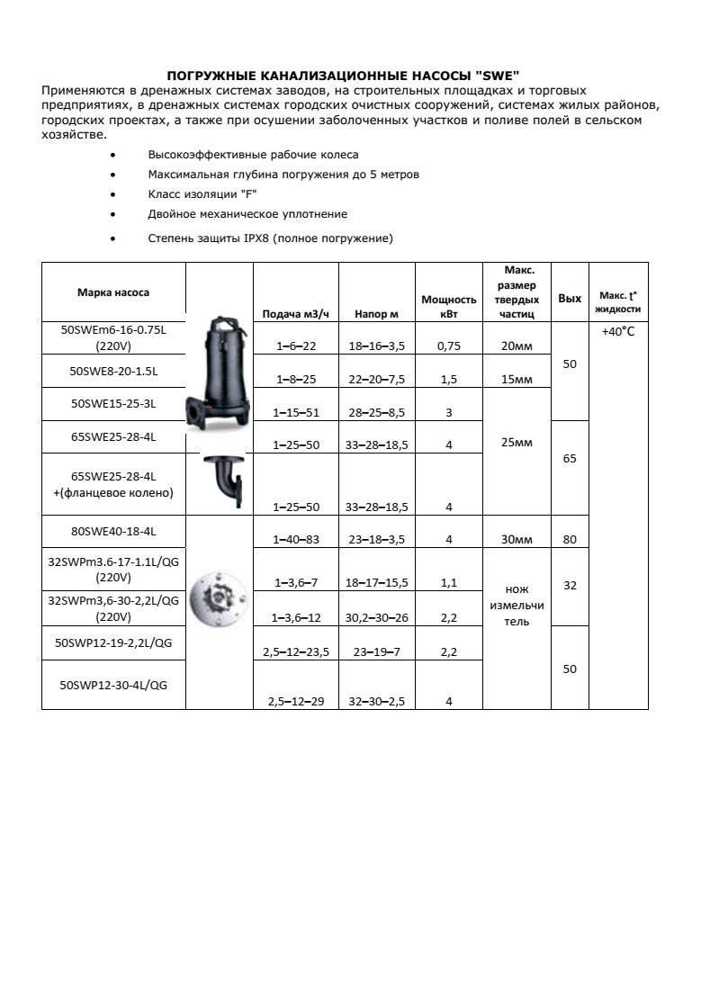 ПОГРУЖНЫЕ КАНАЛИЗАЦИОННЫЕ НАСОСЫ «SWE»