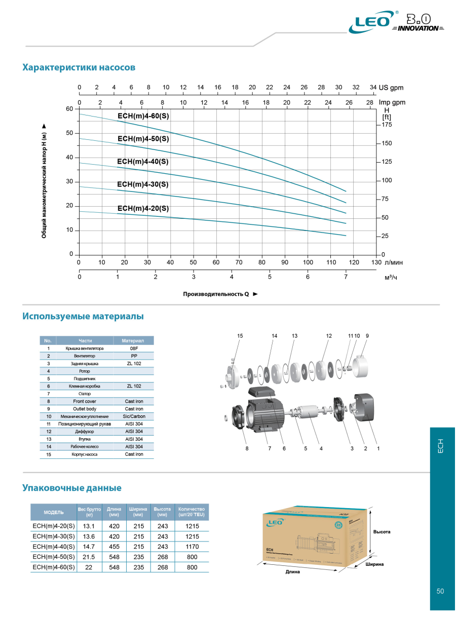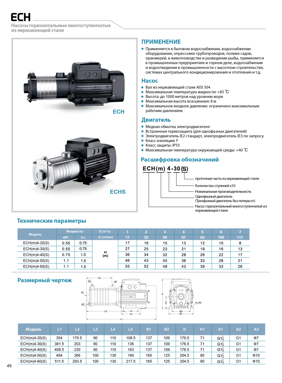 Горизонтальные многоступенчатые центробежные насосы из нержавеющей стали — ECH