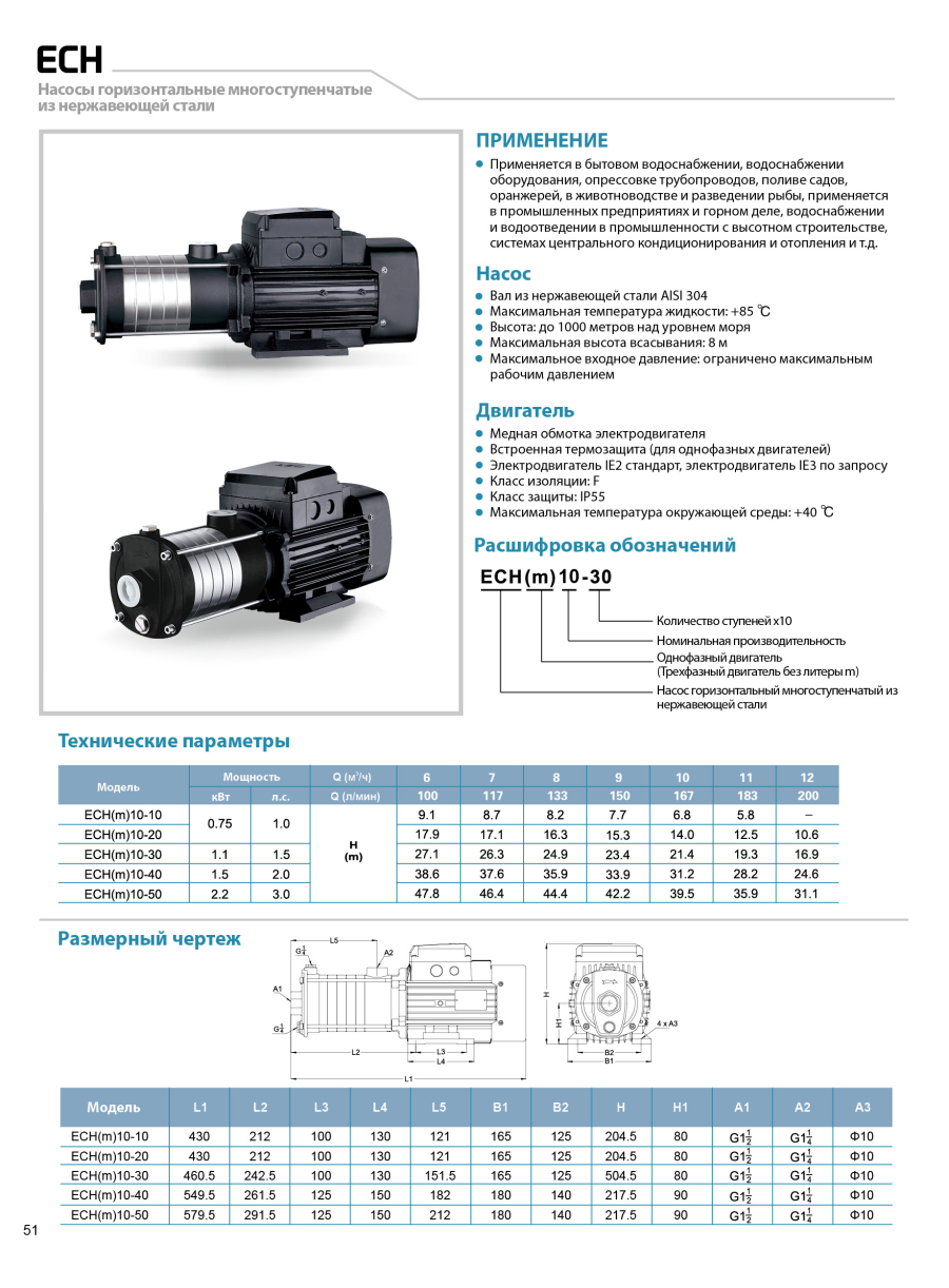 • Горизонтальные многоступенчатые центробежные насосы из нержавеющей стали — ECH