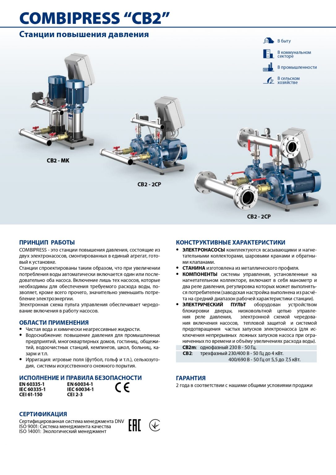 COMBIPRESS это системы повышения давления, в которых два электронасоса смонтированы в один блок, готовый к установке.