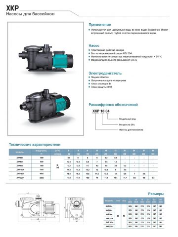 Используется для циркуляции воды во всех видах бассейнов. Имеет встроенный фильтр грубой очистки перекачиваемой воды.